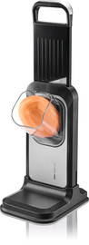 Ein mitgelieferter Stößel ermöglicht das sichere Nachschieben, während der rutschfeste Standfuß für Stabilität sorgt. Die Schneidvorrichtung lässt sich zur platzsparenden Aufbewahrung fixieren, zudem ist SWEET-CUT zerlegbar und dadurch leicht zu reinigen.
