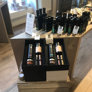 Nach der Devise „Genuss erleben, wo Genuss entsteht“ führen die beiden in ihrem 100 m² großen Geschäft frisch gepresste regionale Bio-Öle, glutenfreues Gebäck und kaltgerührte Pestos der Marke Ölmühle an der Havel, nach eigenen Rezepturen gemischte Gewürze, Tees und Kräuter (Tea Nova), handgeschöpfte Schokoladen und Pralinen der Marke Chocolain und seit einem Jahr auch die eigene Bio-Kosmetik Linie coeur de beaute. Dazu kommt noch eine große Auswahl an Emaille-Geschirr von Riess und schöne Dinge für die Küche. Präsentiert wird das Sortiment in einem sehr ansprechenden, aufgeräumten Ambiente: die grauen Wände bringen die Präsenter aus hellem Holz besonders zur Geltung. Hinter dem Verkaufstresen finden die Kunden auf Schiefertafeln Angebote und auch immer wieder Rezepte für Gerichte mit den naturbelassenen Ölen.