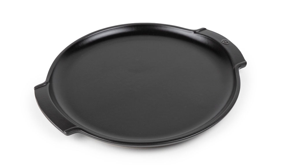 Mit einem Durchmesser von 33 cm ist der Pizzastein ideal für knusprige Pizzen. Ein leicht erhöhter Rand verhindert das Verrutschen, große Griffe mit Rillen erleichtern das sichere Tragen.