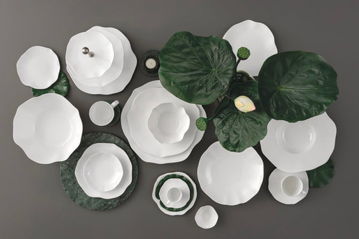 Mit Echo präsentieren Dibbern und Yabu Pushelberg ein neues Dekor, das Rhythmus, Licht und Wiederholung erforscht. Weiche Übergänge und sanfte Farbverläufe bewegen sich über Fine Bone China und schaffen Muster, die zugleich ätherisch und geerdet wirken. Das Dekor reagiert subtil auf Licht und Perspektive und verändert sich mit jeder Bewegung am Tisch. Das Stapeln wird Teil der Designsprache. Jeder Teller fügt eine neue Ebene hinzu und ermöglicht es Farbe, Ton und Form, in leiser Variation miteinander zu interagieren.