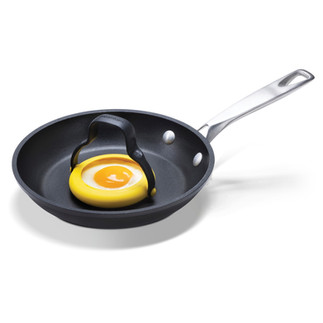 Wird der flexible Griff zusammengedrückt, dann verändert sich die Form des Rings, das gegarte Ei löst sich aus der Form und kann direkt auf den Toast oder den Teller gegeben werden. Der Griff von Flegg ist um 360° drehbar, sodass er in beide Richtungen gewendet werden kann und sich flach verstauen lässt. Der hoch hitzebeständige Nylongriff hat genügend Abstand zur heißen Pfanne und wird so nicht heiß. Über Profino.